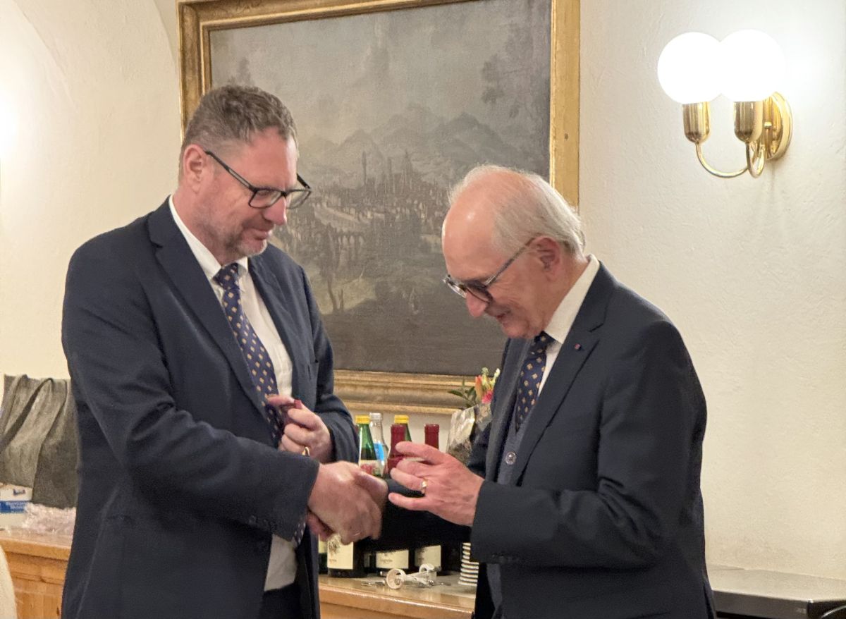 Dann galt es, unseren langjährigen Schatzmeister, Ing. Heinz Schösser, zu verabschieden. Weil OB Schösser dieses Amt über 18 Jahre lang nicht nur zur vollsten Zufriedenheit der Komturei Innsbruck ausgeführt hat, sondern auch die Zusammenarbeit mit der Statthalterei angenehm und verlässlich zu gestalten wusste, ließ es sich der Schatzmeister der Statthalterei, OB Dipl.-Ing. Dr. Werner Johler MBA, nicht nehmen, zusammen mit seiner Gattin aus Vorarlberg anzureisen und Heinz Schösser persönlich den Dank der gesamten österreichischen Ordensfamilie auszusprechen.